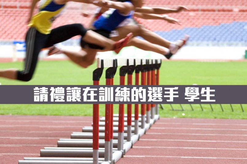 我們都明白選手訓練的窘境,當看到訓練的選手與學生時,請禮讓跑道給他們做訓練!該怎麼分辨誰是選手呢? 跑步起來有風的那位就是了。