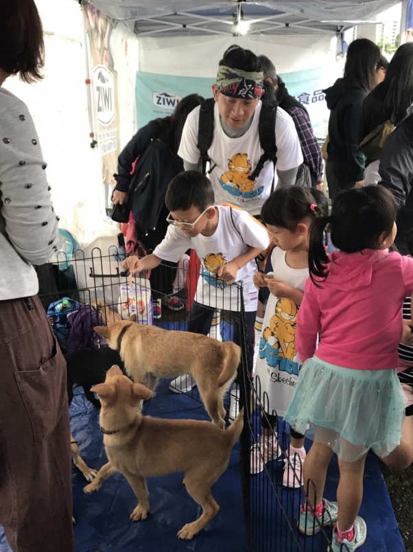 高山峰闔家重視生命教育 特地到攤位關懷流浪毛小孩(圖片來源:SKECHERS)
