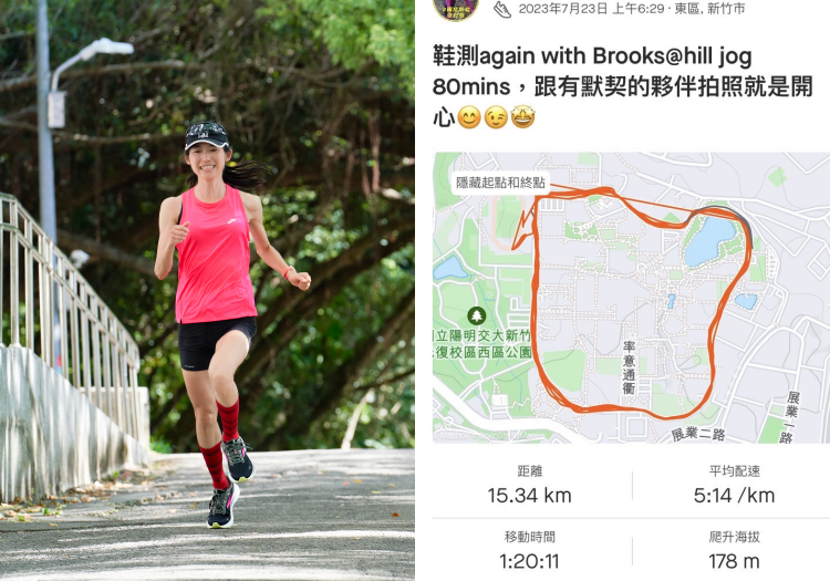 小黃在剛開始接觸訓練時,習慣穿著薄底鞋訓練,但 5 年前因過度訓練,導致足弓塌陷,還伴隨脛前肌受傷,當時除了調整跑姿,也開啟了與厚底鞋的緣分。當時選擇了 BROOKS LAUNCH 5 作為復健與輕鬆跑,因此對 BROOKS 緩震支撐跑鞋的腳感感到印象深刻。