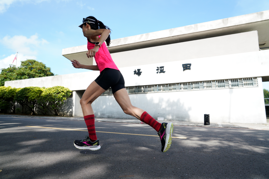 因為之前訓練受傷,開始接觸 BROOKS 跑鞋,對緩震支撐跑鞋的腳感留下好印象。