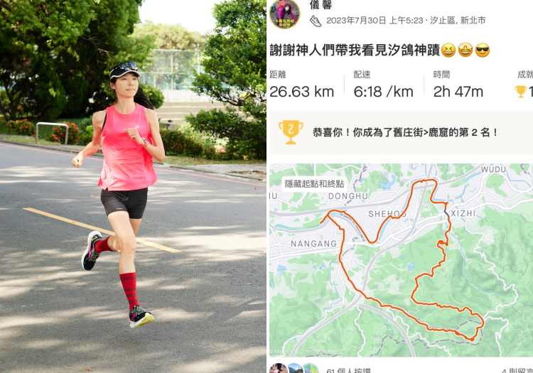 在週末清晨五點,跑團的大家就在汐科車站集合,一起跑經典路線-「汐鴿」。即使上坡 5K 都是令人心寒的 8-9% 陡坡,但還是不能辜負跑友的期待,喘著也要到鹿窟事件紀念碑。這次在 BROOKS ADRENALINE GTS 23 戰靴加持下,無論是柏油路上下坡、還是紅磚道、水泥等具有硬度,且可能稍有不平的路面,都可以維持一貫的避震與支撐性,即使跑了 26K 後,足弓也沒有緊繃與疲勞感,整體看來長距離的有氧跑表現不錯。