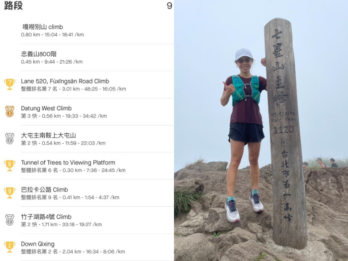 過了七星山主峰,累積了 1600m 的爬升、17k 的距離後,還要面對一連串溼滑石階的陡下,此時狂奔下山的我對於 CASCADIA 17 的越野動態適應系統感到相當驚艷!在快速下坡時 DNA LOFT V2 中底提供穩定、避震,能安心且快速地踏出下一步,分段式的山羊蹄大底可以輕鬆抓住地面,不易打滑,在距離拉長的情況下,還能輕快的下山,猶如自己是隻山羊般,一推一蹬都穩固自在,心裡不禁大喊了一句:Wow~so amazing!回家上傳了紀錄,還發現不小心破了自己的成績紀錄呢!