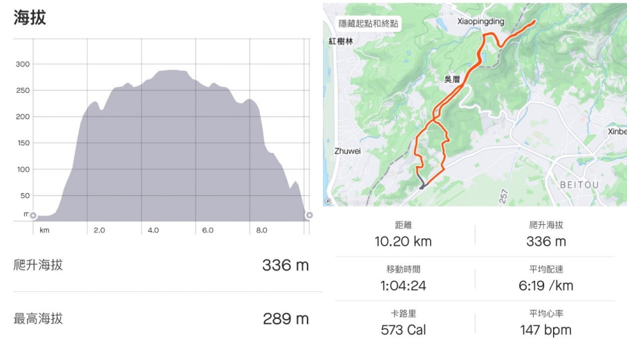 (1)距離約10k,爬升約 330m,山徑與柏油路面各佔 50%