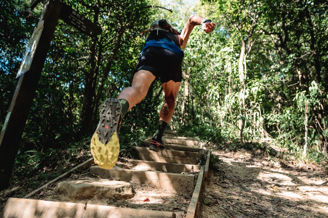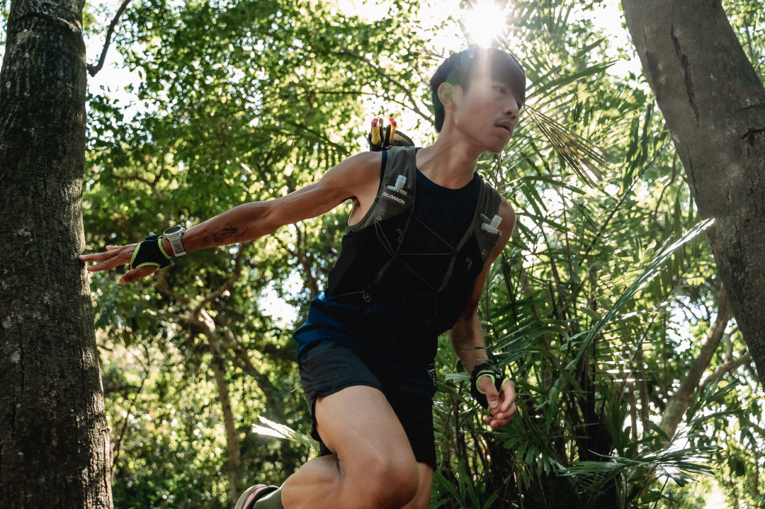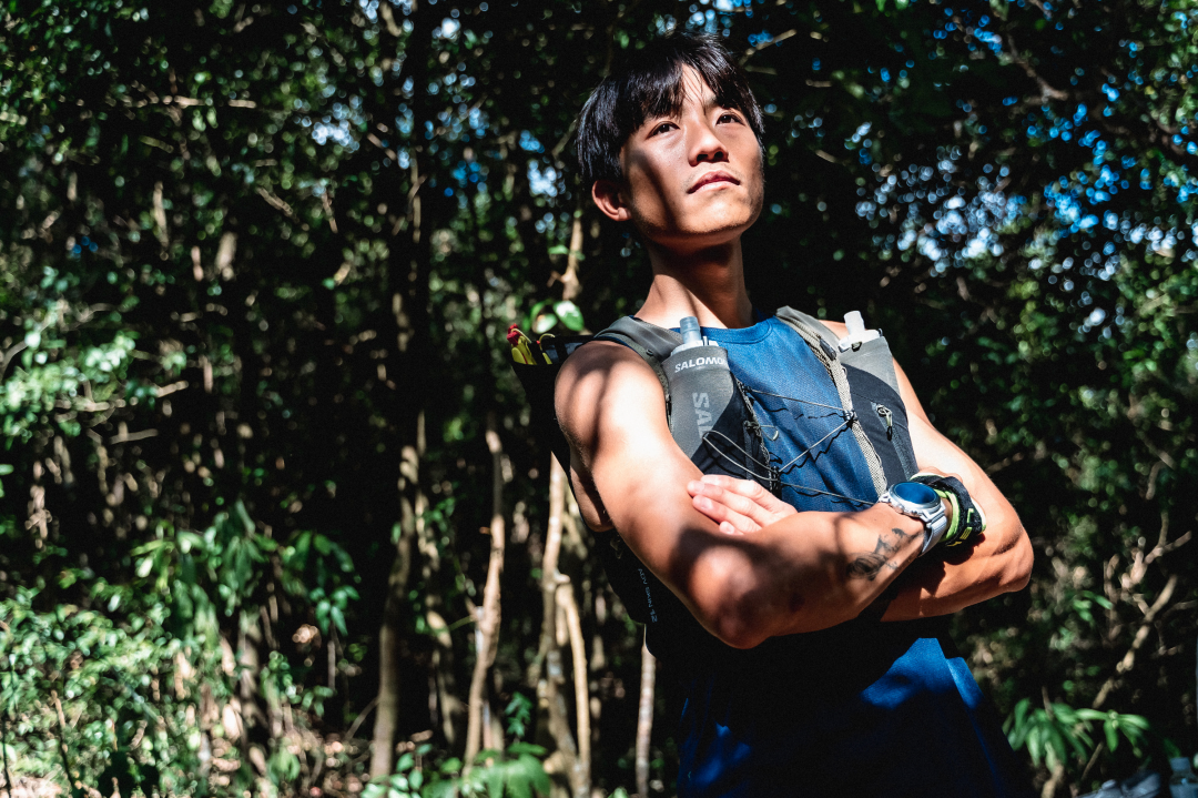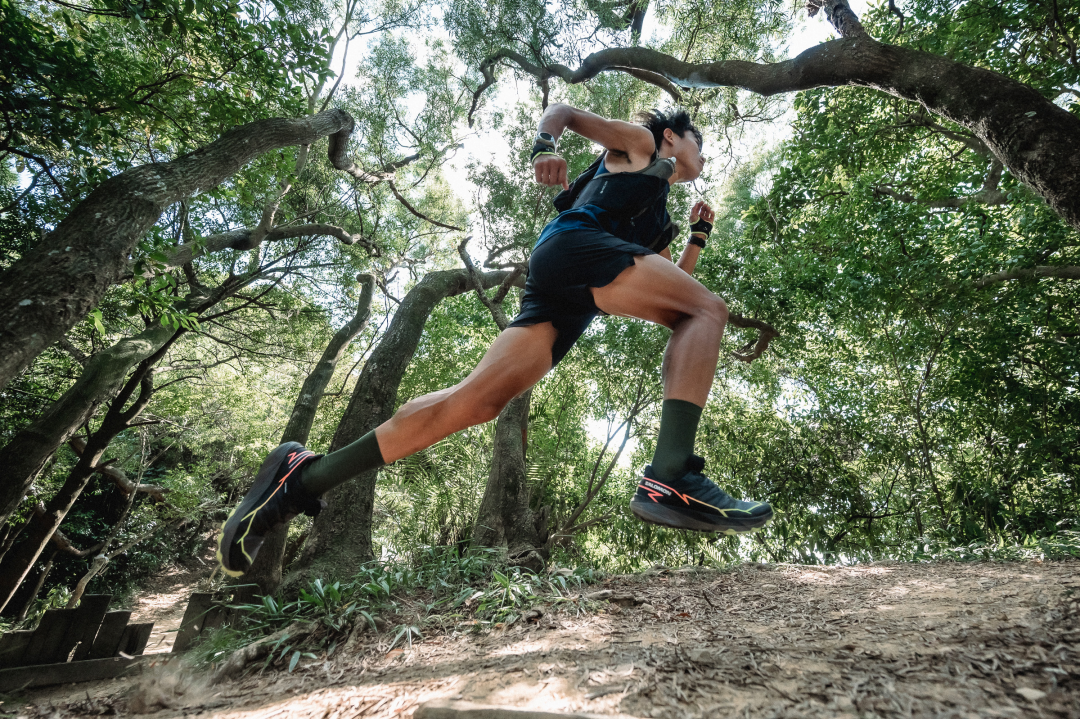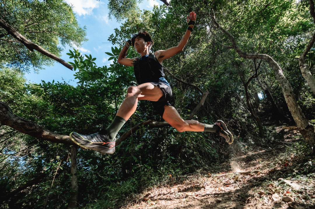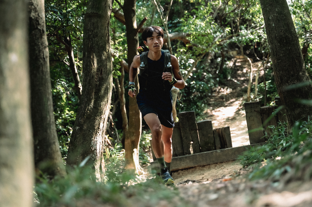 不過在 2018 年,Momo 因自行車受傷後就直接全程投入劇組攝影工作,直到在 2022 的 8 月前往香港工作時,他利用空檔之餘走進山林健行,開啟他轉往越野跑的契機。香港是由火成岩所組成,地形多山且崎嶇不平,在大自然的鬼斧神工下,孕育許多越野好手與吸引大量登山客前來此地一遊,當時只是想進入山林放鬆身心的 Momo,看到身邊來去自如、身手矯健的越野跑者,也被這帥氣英姿給吸引著,從那天起便埋下越野跑的種子,也終於在去年 Momo 決定從香港的獅子山開始踏出他的越野之路。