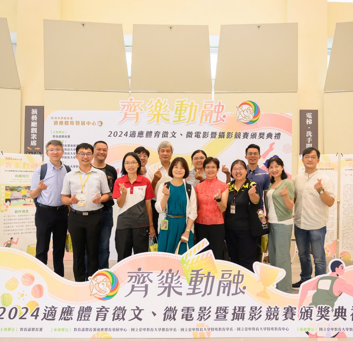 由教育部體育署主辦;教育部體育署適應體育發展中心、國立臺中教育大學體育學系、特殊教育系、特殊教育中心承辦;國立臺中教育大學教育學院協辦的——「齊樂動融」2024 適應體育徵文、微電影暨攝影競賽頒獎典禮於 9 月 11 日圓滿結束。此次競賽的優秀作品將進行全國巡迴展覽,讓更多人感受到適應體育的溫暖與力量。
