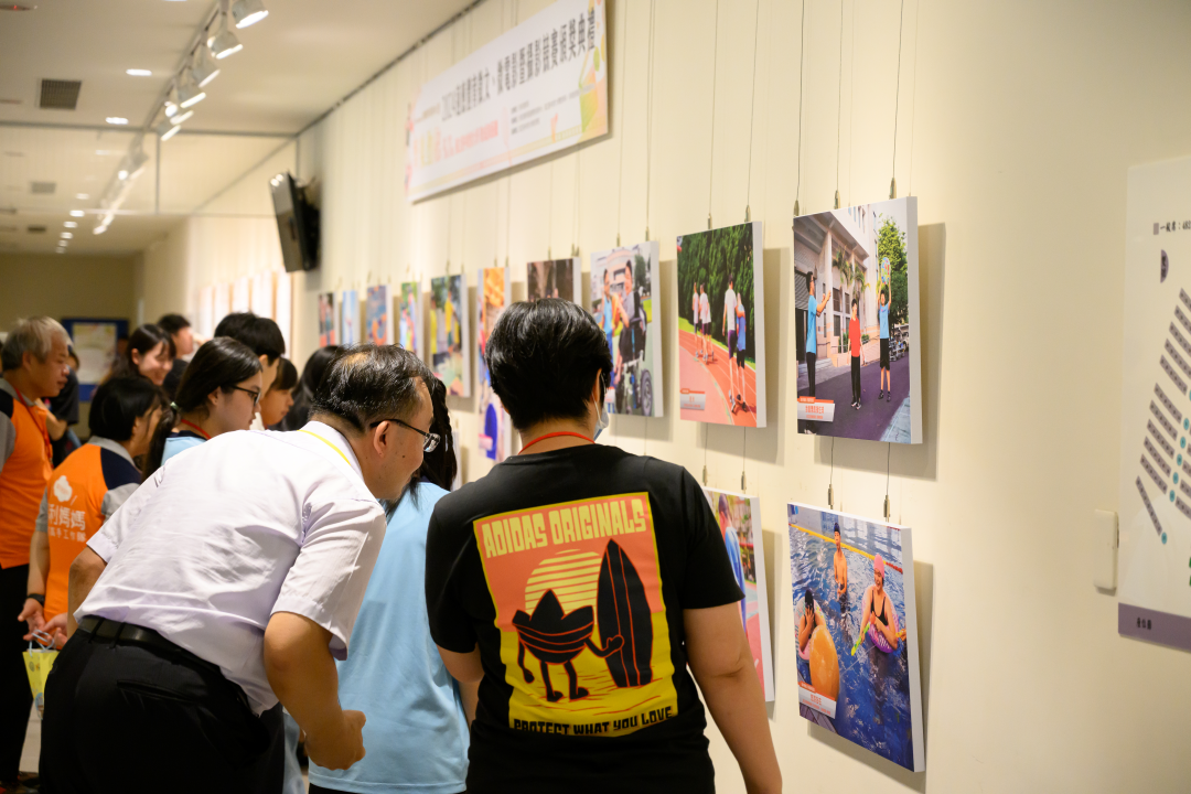 來賓們駐足觀賞「齊樂動融」2024 適應體育徵文、微電影暨攝影競賽頒獎典禮攝影作品。(圖|陳逸凱)