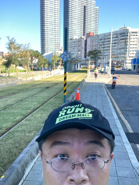 亞灣風景~輕軌電車、夢時代百貨、海邊風景,看起來很舒服,有點晚起跑,天氣好熱!比較可惜。