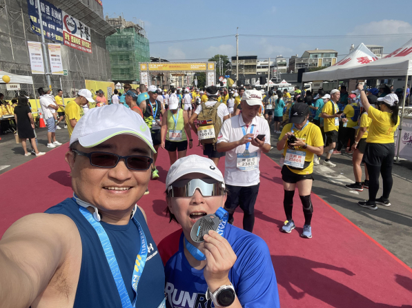 非常歡樂的馬拉松!半馬的補給站超過十個以上,幾乎三公里就一個補給站。到了市區三公里路程,幾乎整條都是補給站。田中民眾真的太熱情了!