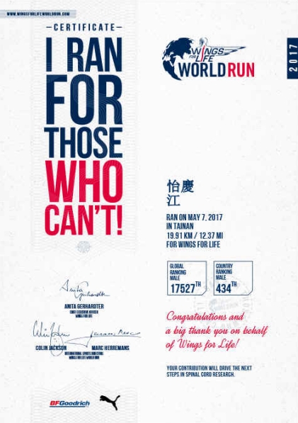 很有意義的一場活動,為不能跑而跑,有需要改進的就是接駁系統,因接駁不夠即時,蠻多跑友選擇自行走回終點.