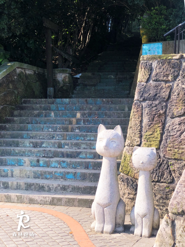右手邊會看到可愛的貓雕像,這裡也是許多跑者會合照的必拍景點喔!