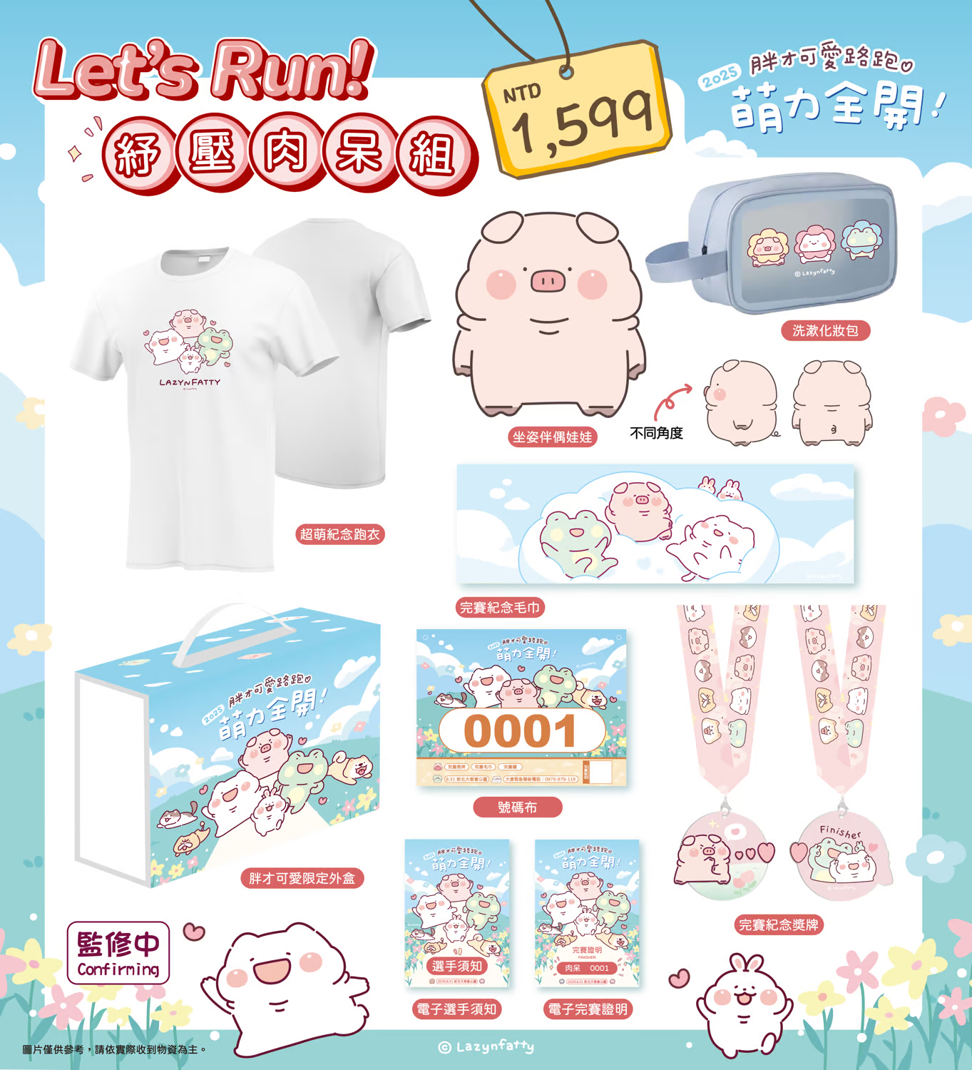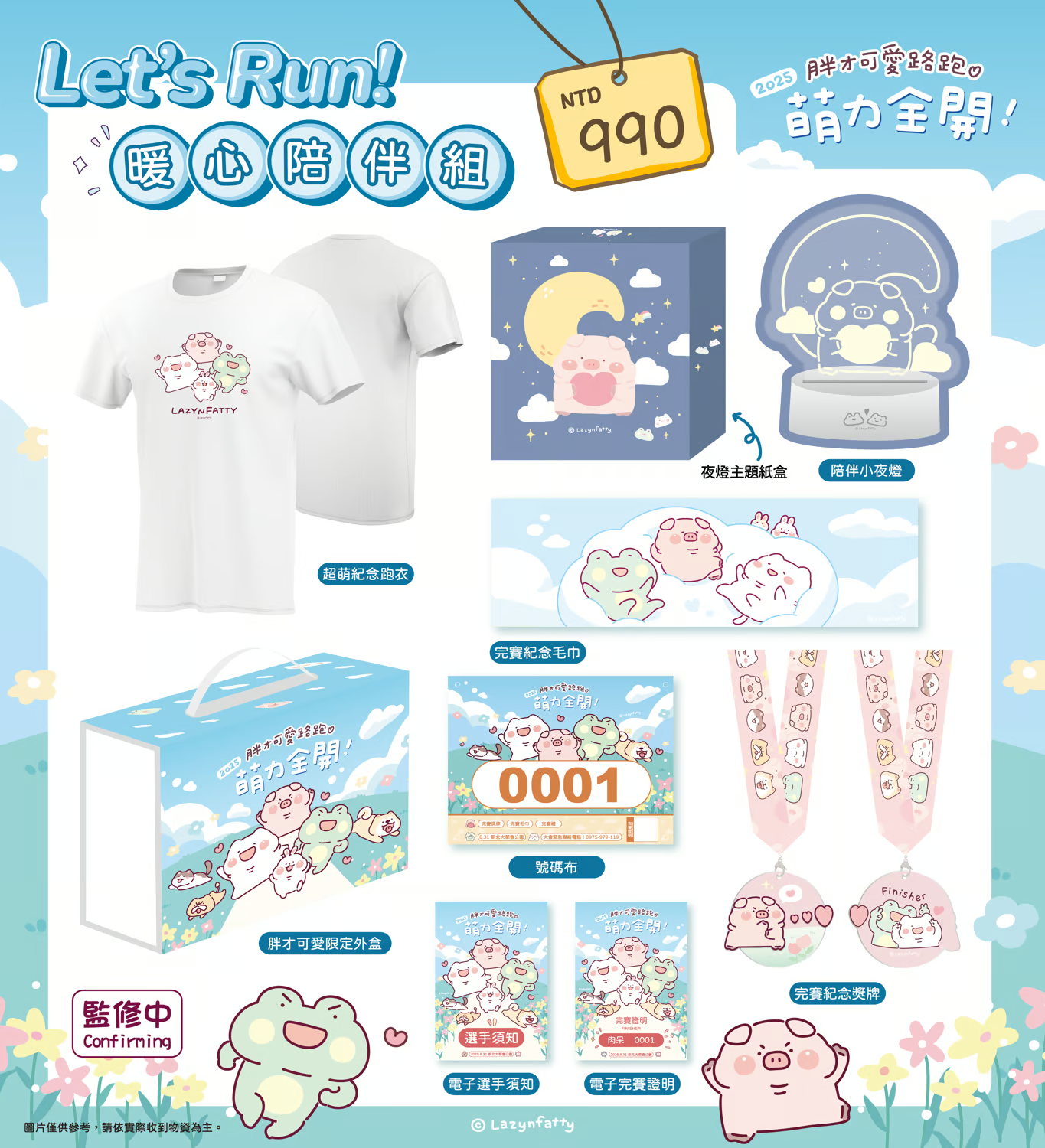 各組時間及參賽人數組別 胖才可愛暖心陪伴組 胖才可愛紓壓肉呆組 公里數 3公里 報名費用 $990 $1599 早鳥優惠 $900 $1500 - 早鳥優惠時段:2025年3月26日12:00~2025年4月9日23:59止