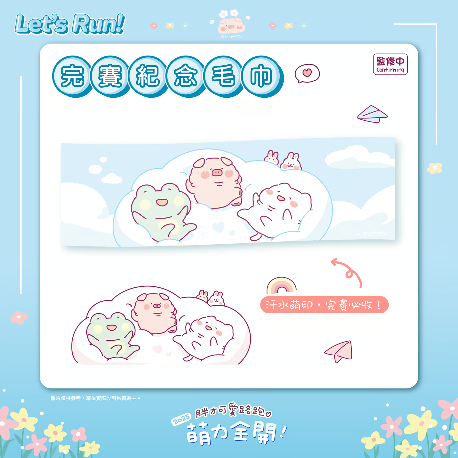 年齡限制 不限年齡 不限年齡 未滿18歲參賽者需檢附「家長同意書」,填寫後請mail至[email protected]或傳真至02-2949-9005 起跑時間 07 : 30 (依報名人數狀況採分梯出發) 起跑關門時間 08:35 關門時間 09:30 限時完賽 1小時 活動結束 10:00 報名回饋禮報名組別 胖才可愛暖心陪伴組 胖才可愛紓壓肉呆組 報名禮(賽前領取-郵寄) 號碼布 V V 跑衣 V V 陪伴小夜燈 V 坐姿伴偶娃娃 V 洗漱化妝包 V 胖才可愛限定外盒 V V 電子選手須知 V V 完賽禮(賽後領取-現場憑號碼布領取) 完賽獎牌 V V 完賽毛巾 V V 完賽電子證書 V V 完賽禮 V V 跑衣:依據報名時參加者點選之尺寸訂購,一經點選即無法更改,請每位參加者參考網站提供之衣服尺寸表,務必仔細決定後點選。(尺寸為手工丈量,誤差1~2cm為正常範圍)