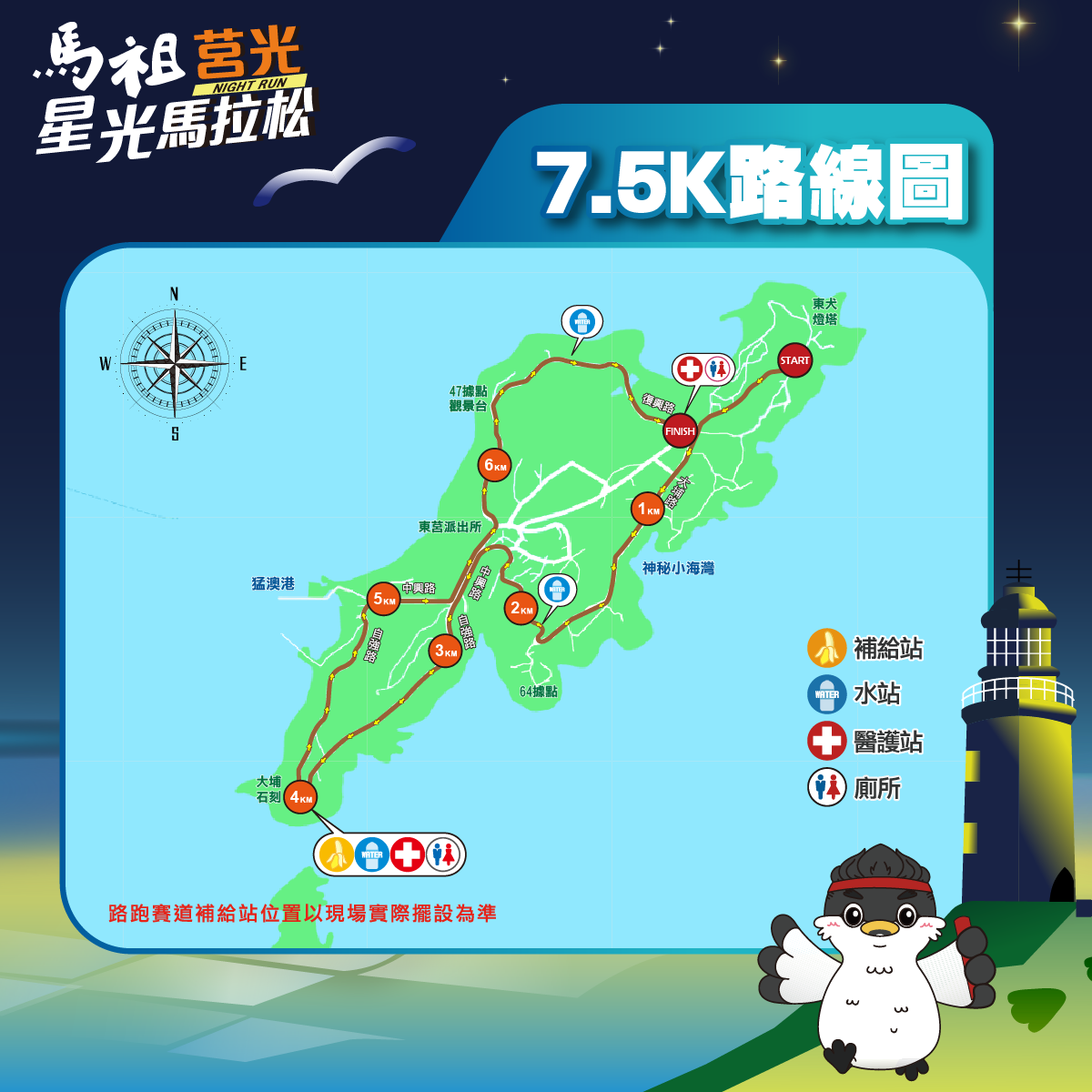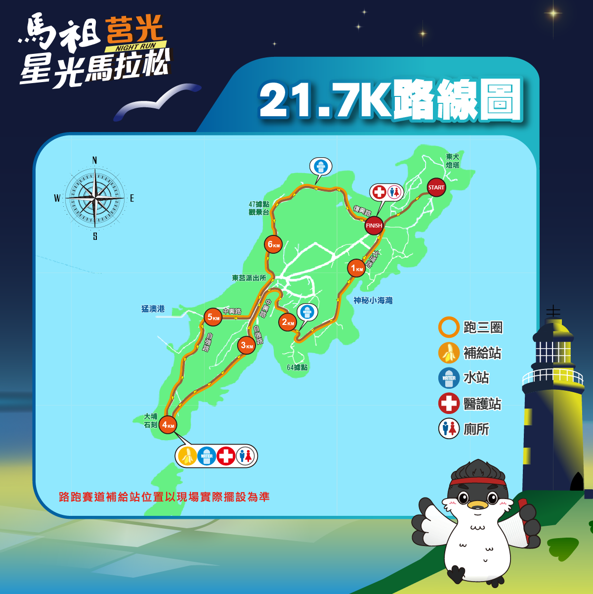 路線:起點(START)→大埔路→神祕小海灣→中興路→自強路→大埔石刻→東莒派出所→47據點→復興路→莒光遊客中心→終點(FINISH)