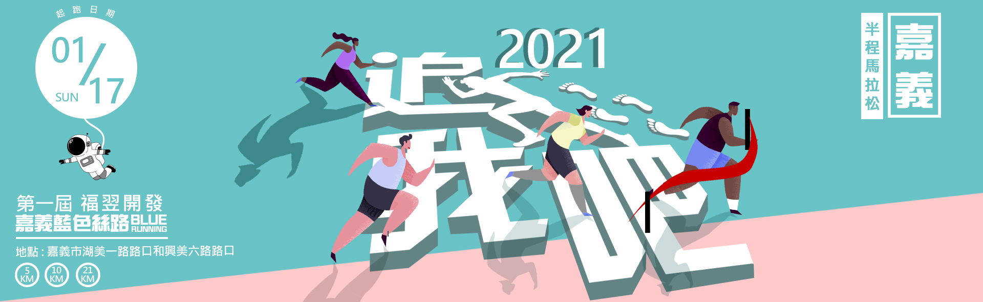 活動名稱 第一屆福翌開發嘉義藍色絲路半程馬拉松活動日期 2021年01月17日(星期日)報名時間 2020/08/25(二)~10/01(四)