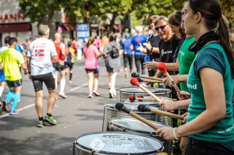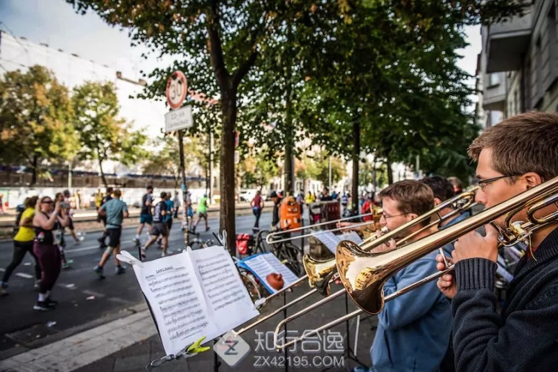 柏林馬拉松還有一個外號,叫做“ 音樂馬拉松” ! 是的,從開跑到衝線,賽道沿路遍布著的,除了永遠是熱情高漲的觀眾,還有無可挑剔的樂隊表演! 密集的鼓點激發剛健的步伐,生動的樂曲直撞心臟,給你的心臟最直接、明快、有效的刺激。沿途無論是歐盟最高的柏林電視塔,還是鐘聲大作的教堂,無論是色彩結構非同一般的古蹟還是流淌著現代氣息的商廈,都成為了這場盛大音樂會中無可挑剔的背景。