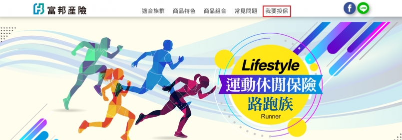 線上投保步驟簡便,只要在比賽前花一點時間就能搞定(一人投保賽前一小時前仍可保,多人投保需5天前辦理)。首先,進入「Life style 運動休閒保險-路跑族」的網頁。