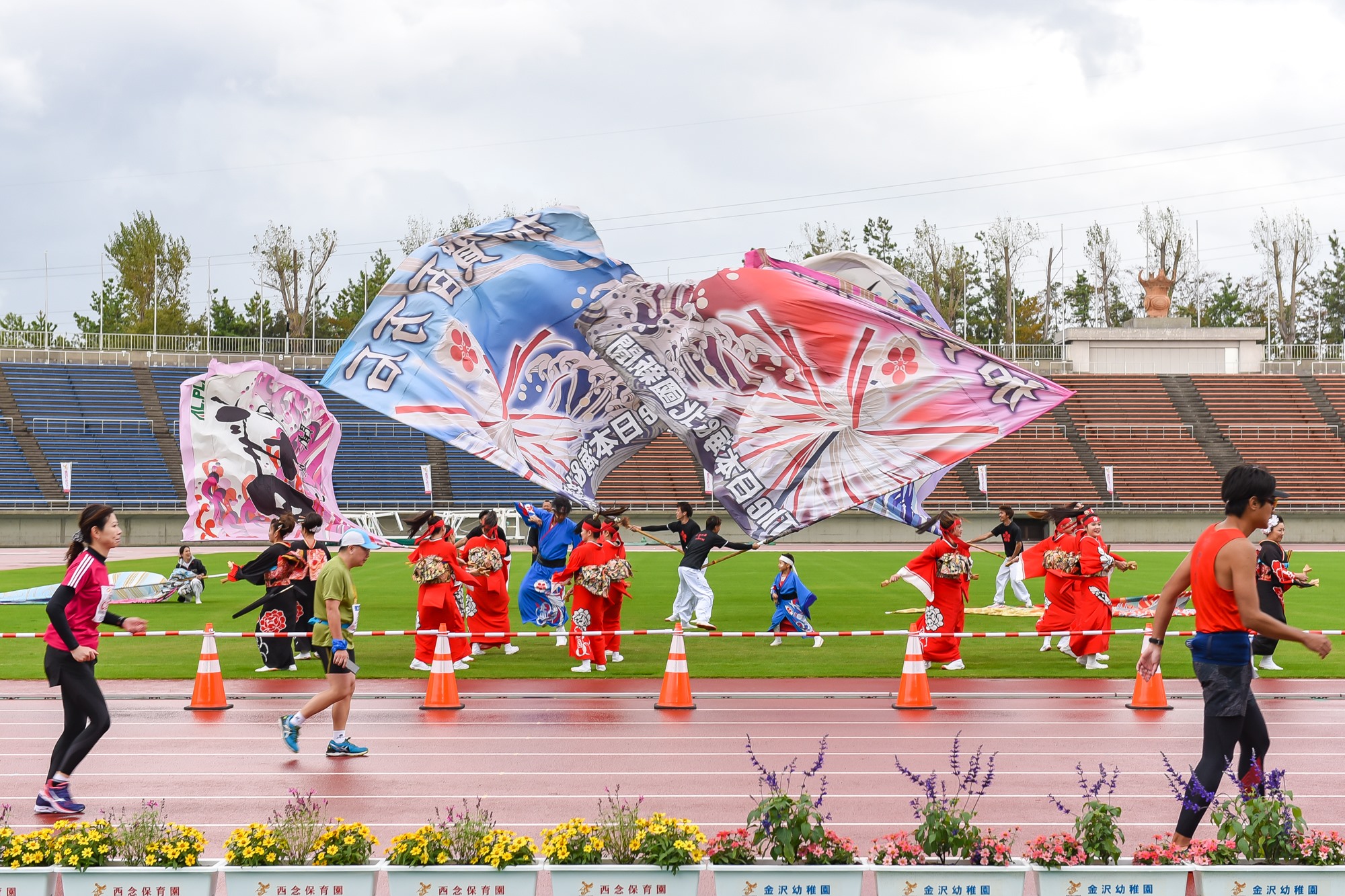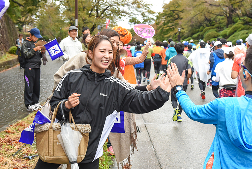 跑者除了體驗美食之外,更能感受充滿熱情的加油團隊,途中會經過金澤大學和北陸大學,學生們熱情洋溢的大聲呼喊加油,甚至有街頭藝人會為參賽者特別準備表演,整個賽道瞬間變成嘉年華會熱鬧非凡。