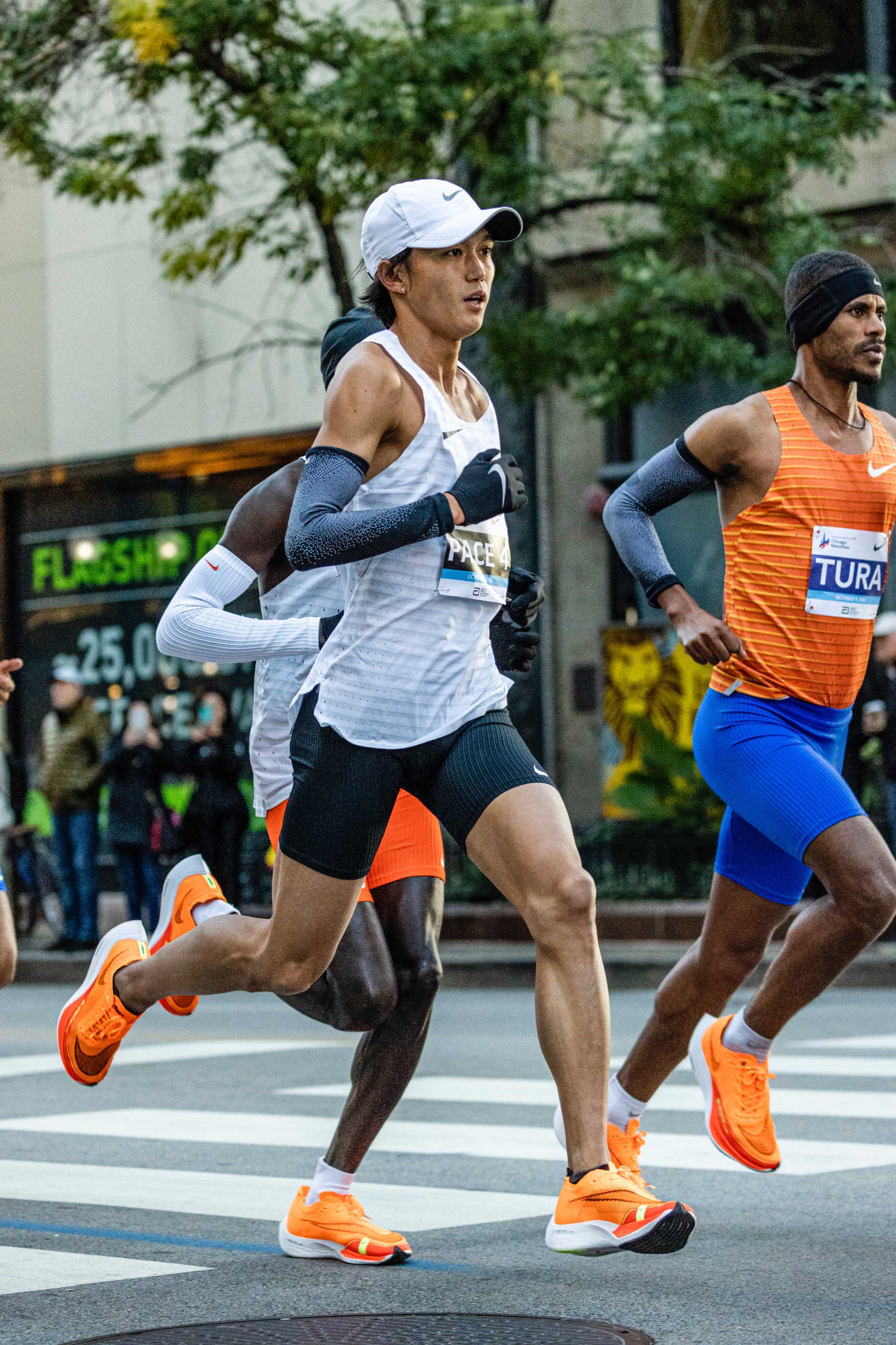 鳴槍起跑後,就出現了第一個驚喜,芝加哥馬拉松的 Pacer4 竟然是我們相當熟悉的大迫傑!配速員以完賽 204 左右的配速帶領集團前進,此時男子集團約有 11 人,而女子組部分開賽後,Ruth Chepngetich 以驚人的高速獨走,按照該速度將會是打破女子馬拉松世界紀錄的配速!