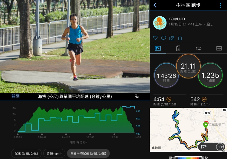 - 測試地點:樹林大同山,山路全為柏油路,總距離 21.11K。