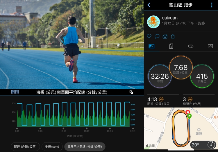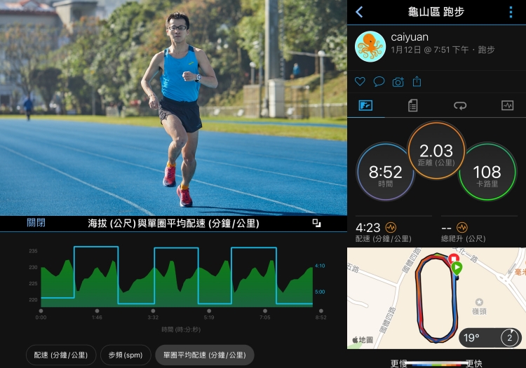 - 測試地點:林口體育大學綜合田徑場,PU 跑道,間歇 400mx13 趟,中間休 200m 緩跑,最後再多加 400mx3 趟。