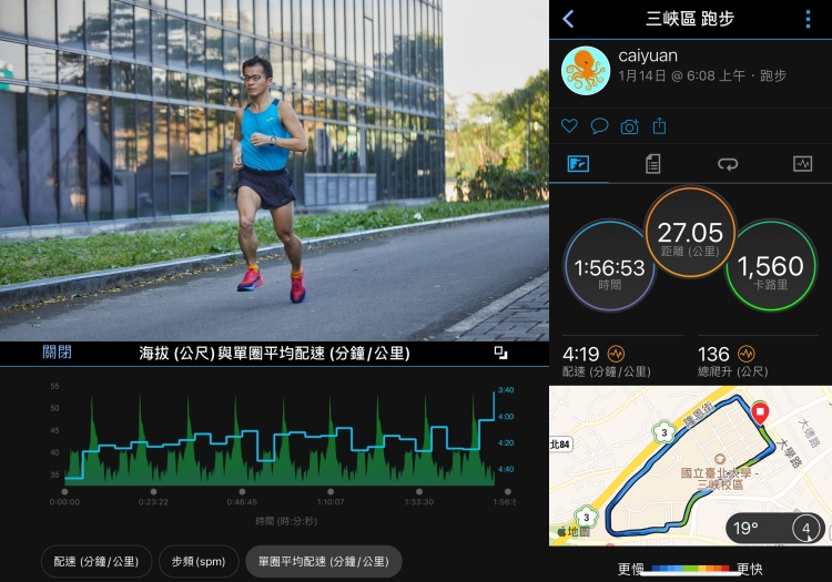 - 測試地點:三峽台北大學,全為平路柏油路,總距離 27.05K。