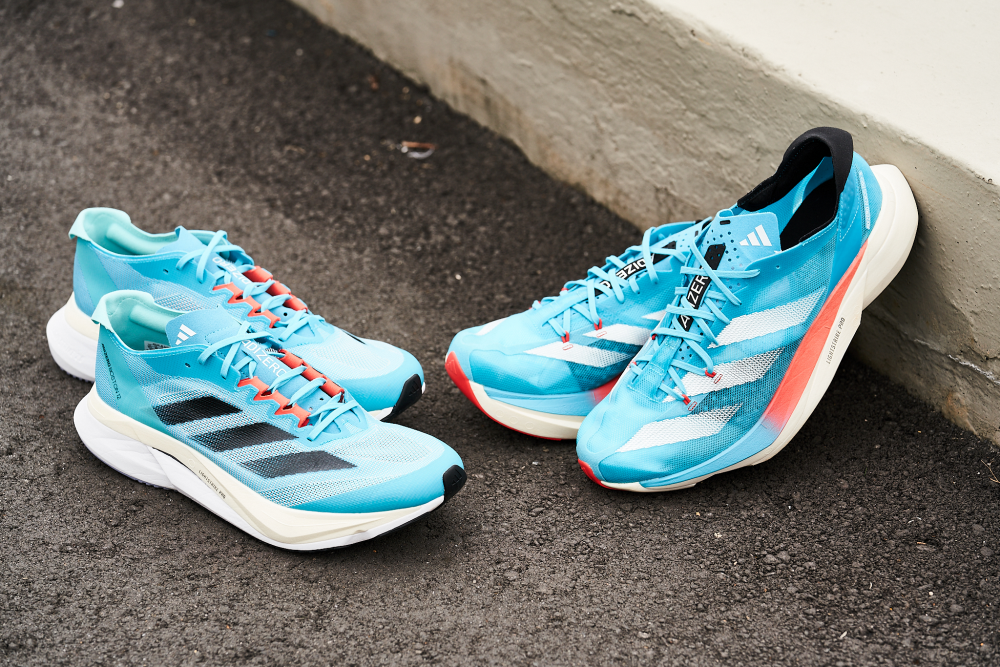 史上最強搭檔 — ADIZERO 家族冠軍基因 PRO 3 與極致柔彈 BOSTON 12。(攝影:Raymond)