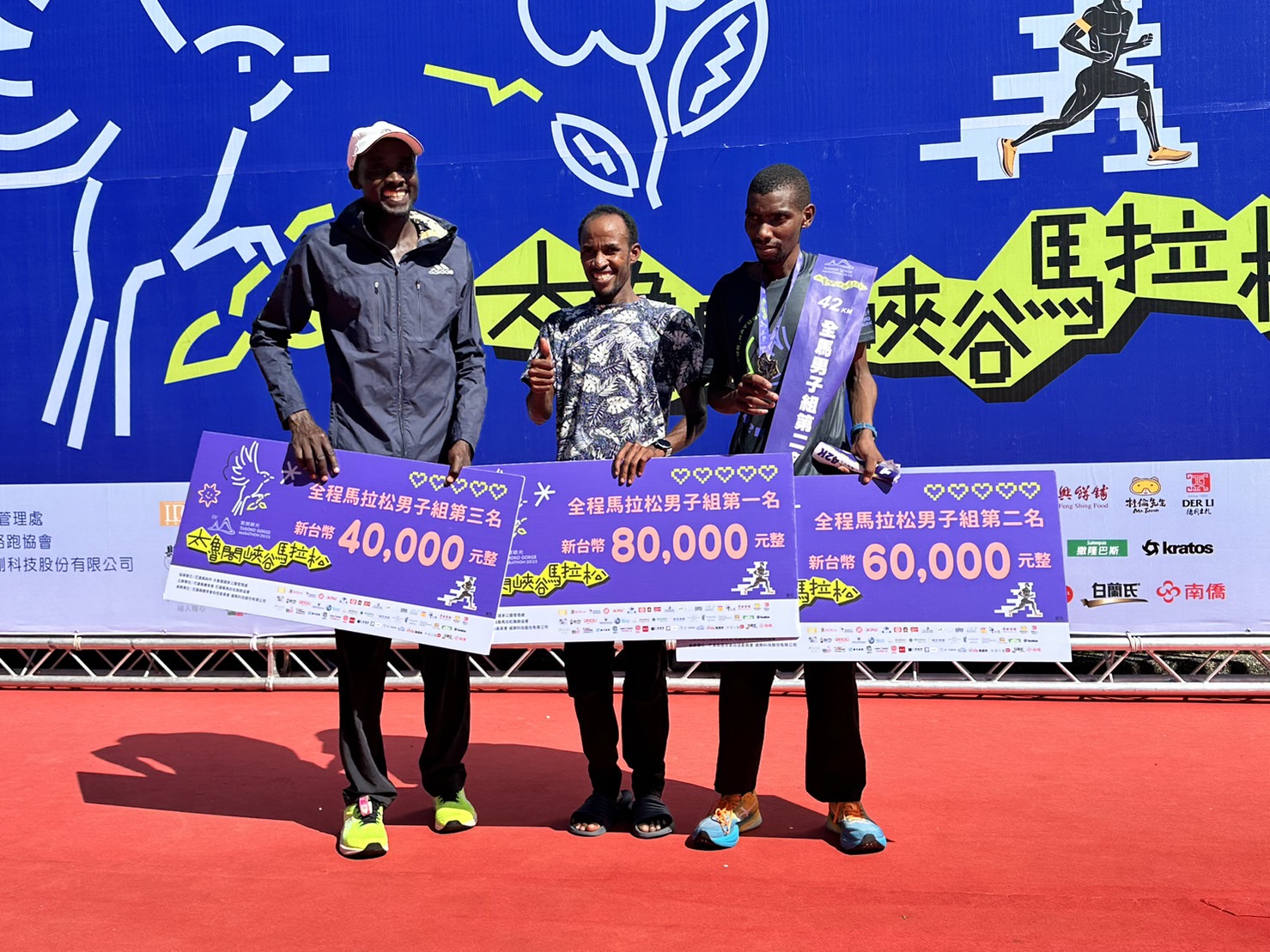 全馬男子組前三名選手頒獎。圖/花蓮縣政府提供