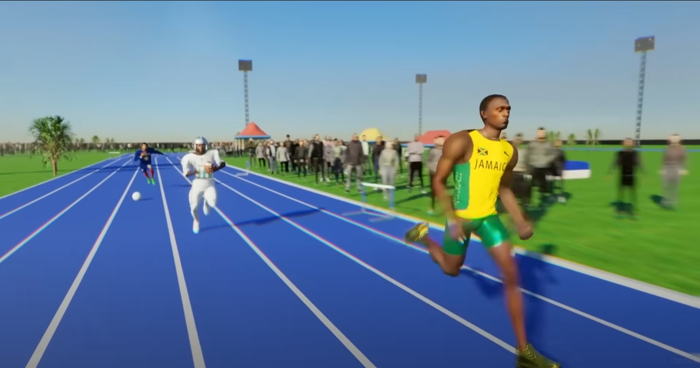 Usain Bol 在模擬影片中直接展現強大優勢領先。 (圖片截取:MotionAthlete)
