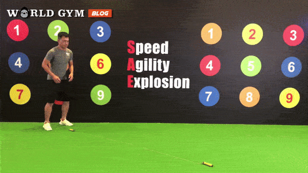 - 右腳往右踏步,左腳往右併攏,身體左右橫移像螃蟹一樣,到跳繩末端,慢慢彎下身體觸摸手把,起身再往另一端跳繩手把移動,重複動作。