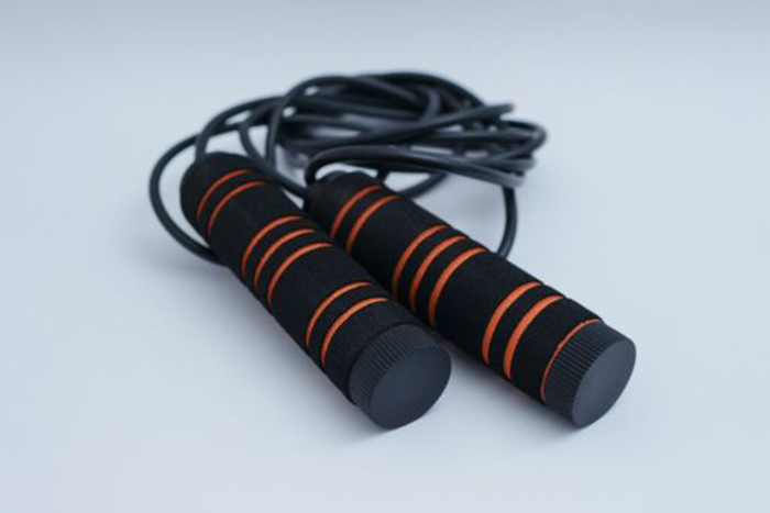 市面上跳繩很多種,兒童用、訓練…等,長度重量都不一樣,選擇適合自己的長度,運動效果會更好,那最佳的繩長怎麼看呢?首先,腳踩跳繩,雙手握住把手往兩邊拉起,當手肘呈現 90 度,這時候高度應該要到約肚臍的地方,就是較適合的長度囉!重量可依自己的需要選擇,不過建議剛開始利用跳繩訓練,或是沒有肌力基礎,使用一般重量即可。