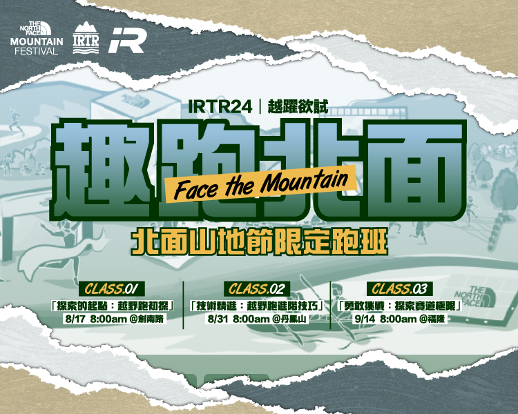 想要挑戰自我、探索自然的無限魅力嗎?加入 IR Sports 跑創運動 的 「北面山地節限定跑班」 < IRTR 越躍欲試:趣跑北面 Face the Mountain >,在 3 堂精心設計的課程中,從零開始,循序漸進地學習越野跑技巧,教你如何在野外環境中自我保護,學會上坡、下坡及呼吸調節技巧,並特別設計的路線模擬真實地形,讓你在實戰中提升技巧。