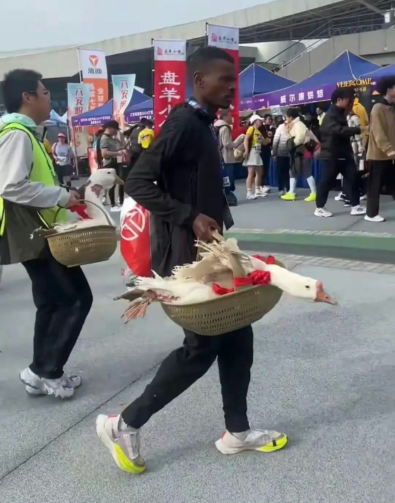 11 月 24 日,安徽六安馬拉松不僅有激烈的競速,還有「活鵝」作為成績優秀者的獎勵!這份特殊禮物讓一些海外跑者抓狂:除了直接端上餐桌,好像還真不知道怎麼帶回國!有些選手甚至被逼上「生意之路」,現場開啟活鵝交易,把獎品賣給當地人,瞬間變身馬拉松跑道上的「鵝市商人」。