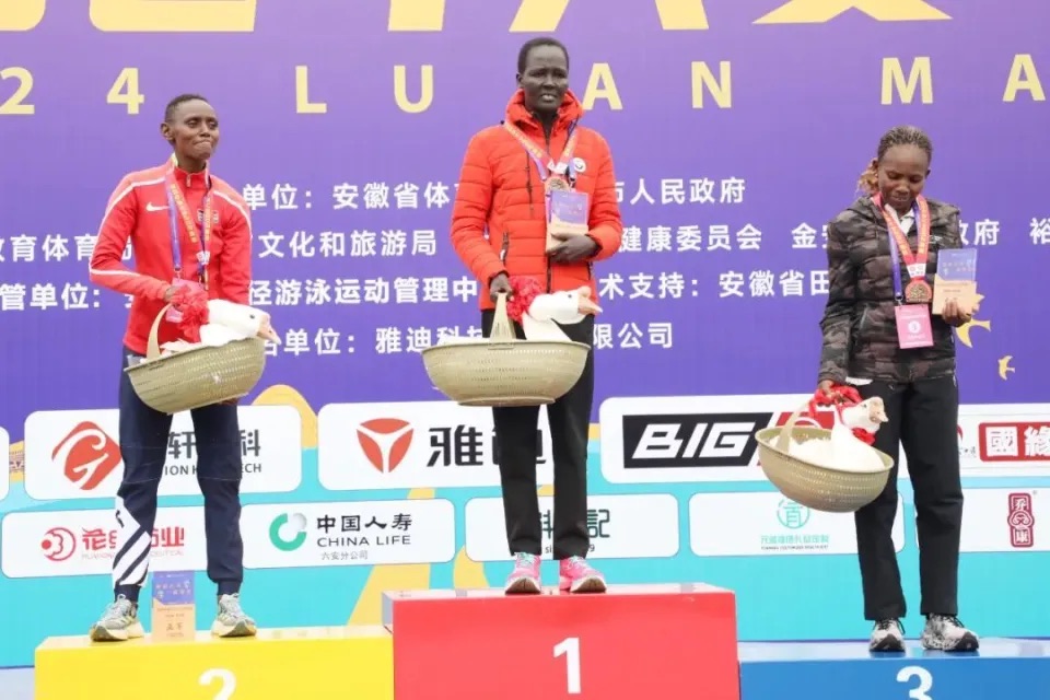 根據 2024 六安馬拉松競賽規程,馬拉松、半程馬拉松以及健康跑項目的男女前三名,除了能抱回獎杯和獎金,還能獲得一份「嘎嘎大禮」:活鵝一隻!負責人解釋說,共有 18 名選手抱回這份特別獎勵。「這不光是獎金之外的額外驚喜,更是我們的一點心意!」