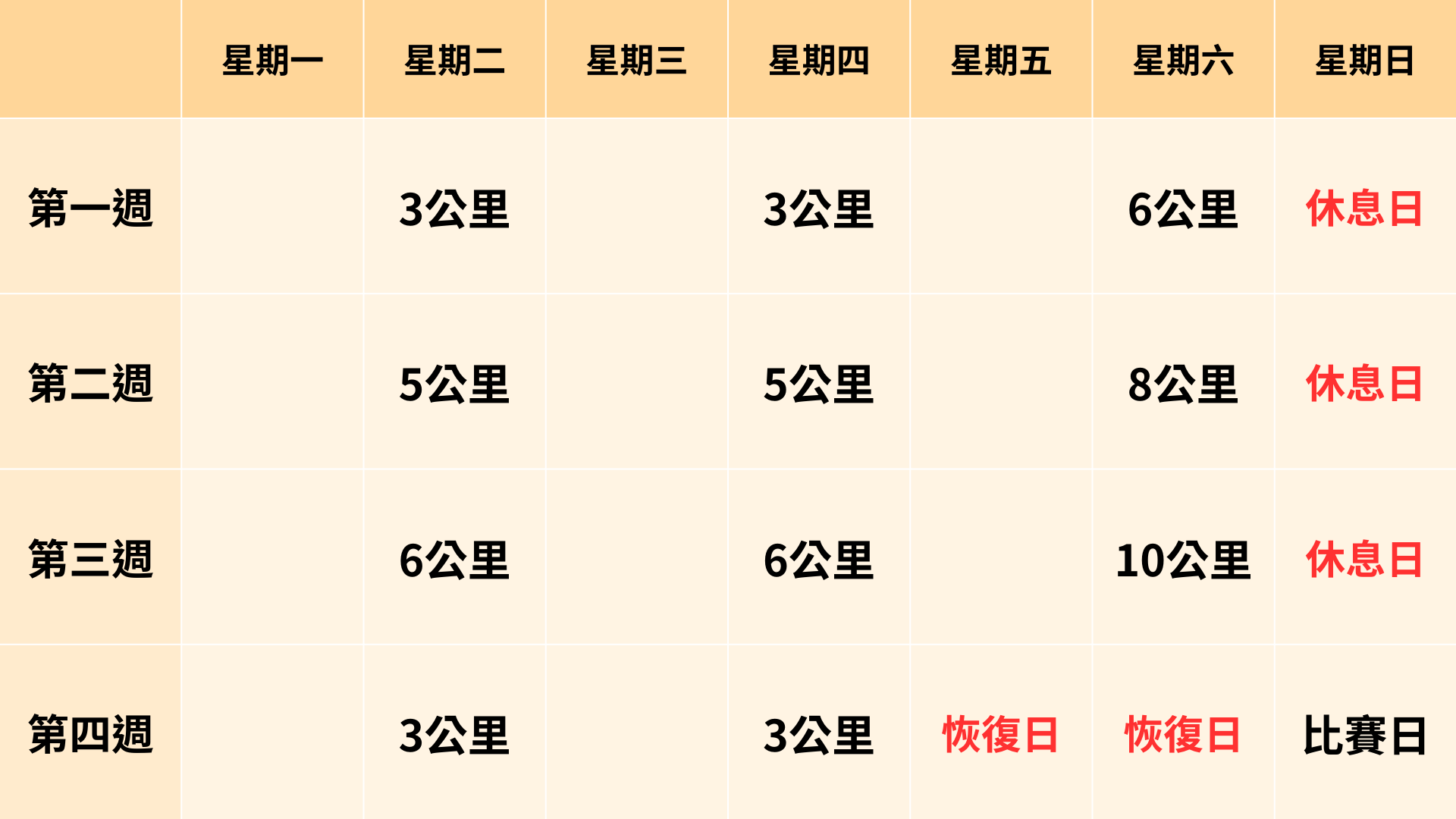 新手 13K 訓練課表 圖表|運動筆記 Barry