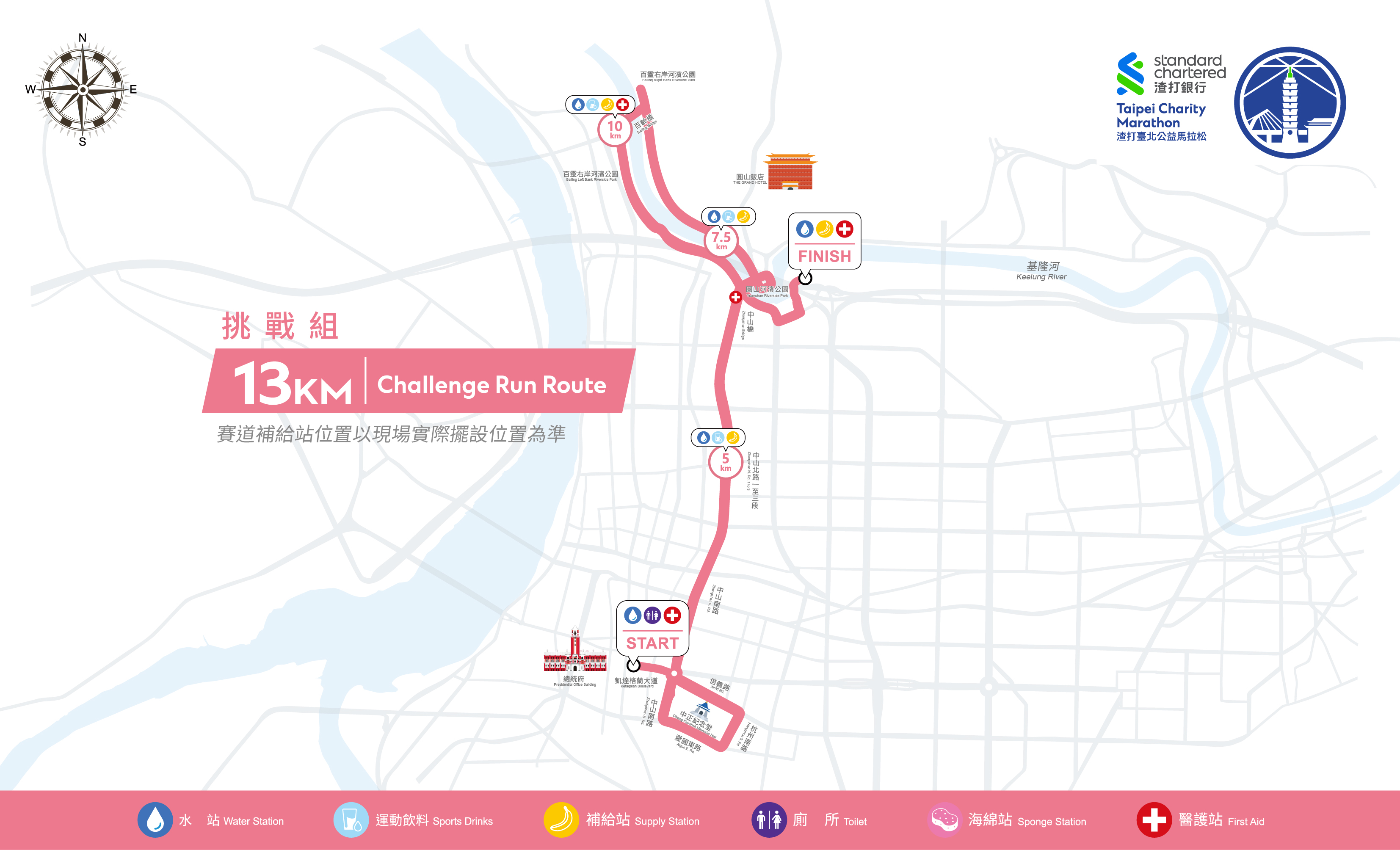渣打臺北公益馬拉松 13公里路線 圖|渣打馬拉松官網
