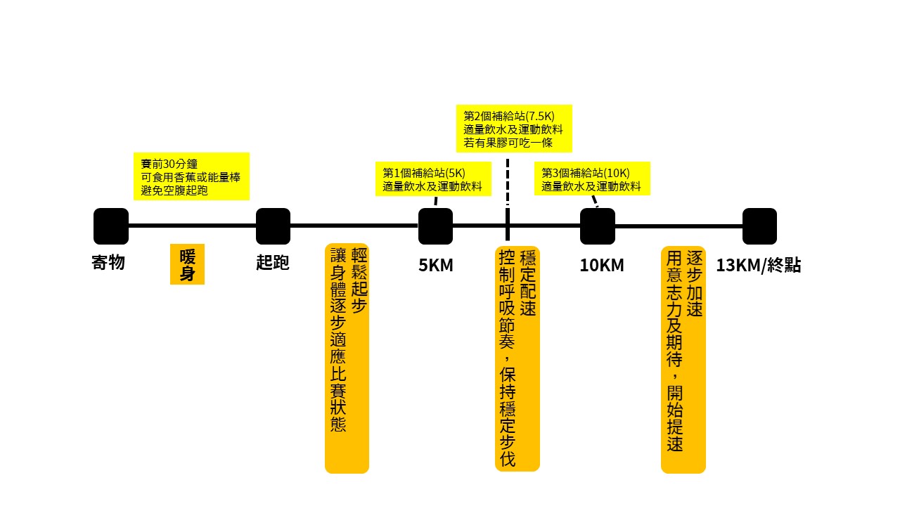 ♦ 比賽當天:如何跑好 13 公里?