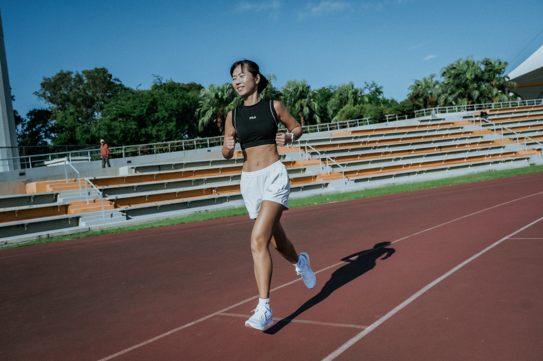 Kelly 在臺北馬結束後,決定讓大腿休息 2 天後來個恢復跑!在腿部還是酸痛之餘,來進行恢復跑對 Kelly 來說,更講求鞋子的包覆性及緩震性,盡量不要讓腿部再增加負擔,剛好 FILA RBG FLEX 2.0 這雙完全符合她的需求,ENERGIZED 中底科技帶給她無與倫比的舒適緩震體驗,鞋面的包覆性也相當貼合,讓雙腳不需要為了穩定而過度用力,也能保持穩定配速。