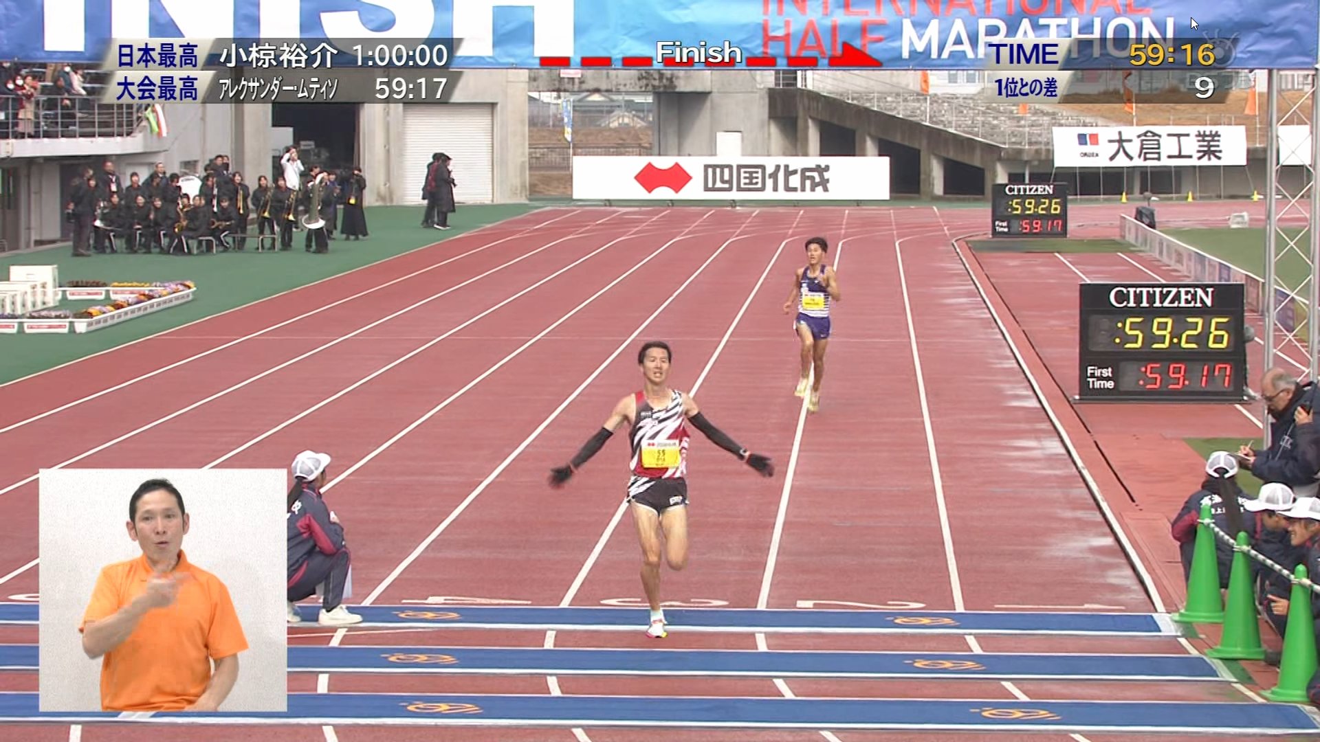 賽前,大家都期待駒澤大學的篠原倖太朗、太田智樹能否打破由小椋裕介於 2020 所締造的 1 小時整日本半馬紀錄,而最終比賽結果由太田智樹以 59 分 27 秒的成績,成功打破日本紀錄並成為首位突破 1 小時大關的日本選手,拿下本場比賽總排第三、日本第一;篠原倖太朗則落後太田 3 秒後衝線,以 59 分 30 秒同樣打破日本紀錄,成為第二位打破 1 小時大關的選手,另外該成績也打破了他所保持的日本學生紀錄(1:0:11),還打破了由東京國際大學 Richard Etir 所保持的 59 分 32 秒。