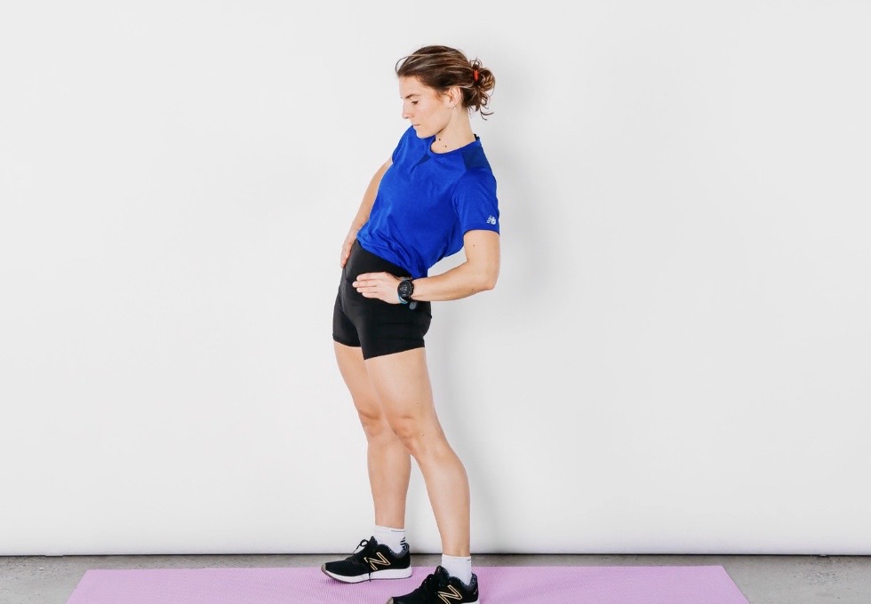 ![]() | 站姿,雙腳與肩同寬,雙手放在臀部。先將髖部向右推,再向後、向左,最後向前畫圓。換邊重複。 | 跑步與久坐都會讓髖部肌群變得緊繃,「這個動作能夠增加髖部的活動範圍,放鬆髖屈肌與腿後肌,同時喚醒核心肌群 | ||
