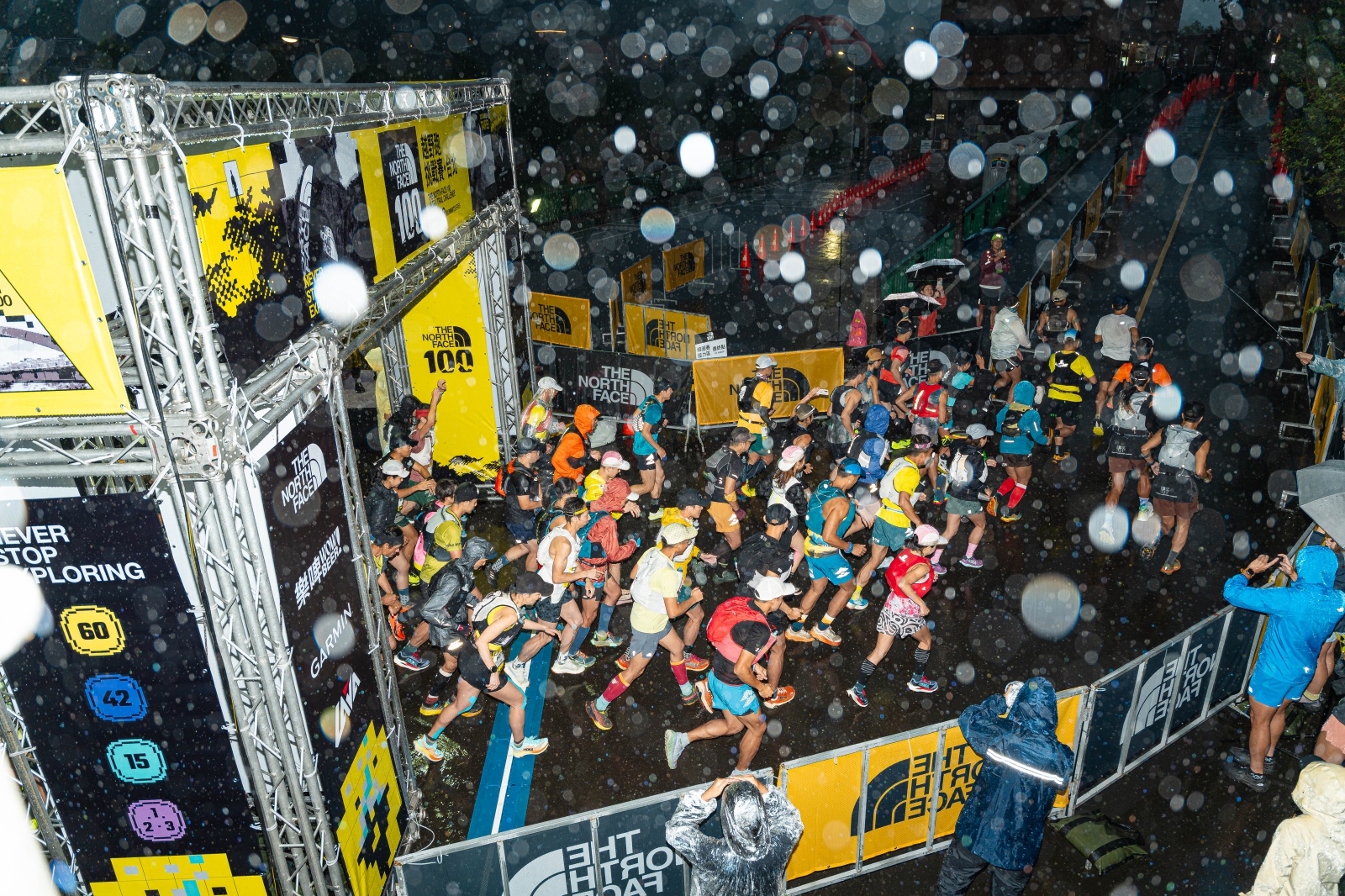 跑者們無畏風雨在大雨下出發!圖|The North Face 提供