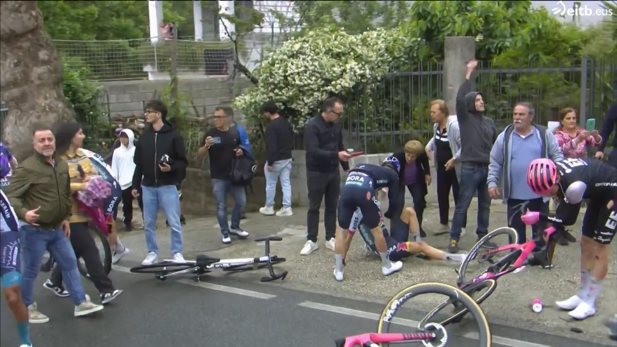 💥 Massive crash in the peloton, with many riders involved, including @RichardCarapazM, Jai Hindley, @PaulMagnier1 and others.