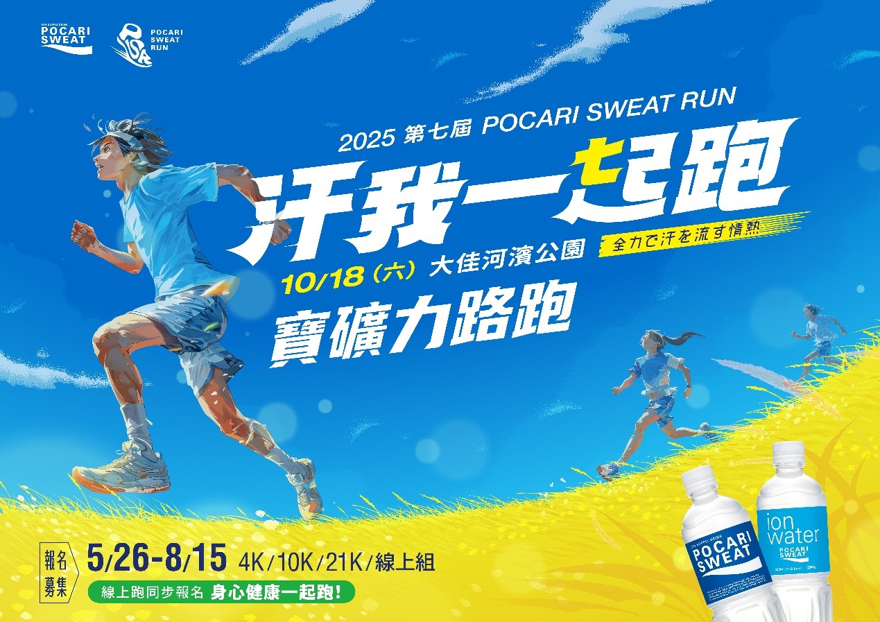 「全力で流す汗情熱」盡情流汗時無條件幫你補水、補電的那場經典藍色路跑又來了!是揮汗時沁涼入喉的藍色、是河濱曬著太陽的藍天色,也是跑步結束後,寶礦力水得留在手心的一抹清爽冰涼。今年邁入第 7 屆的「2025 POCARI SWEAT RUN 寶礦力路跑」,將於 10/18(六)在台北市大佳河濱公園熱血開跑,邀請所有喜歡藍天陽光、喜歡熱力流汗、喜歡與大家一起挑戰自我的你,一同參與這場屬於跑者的慶典。→https://reurl.cc/XA8ezE