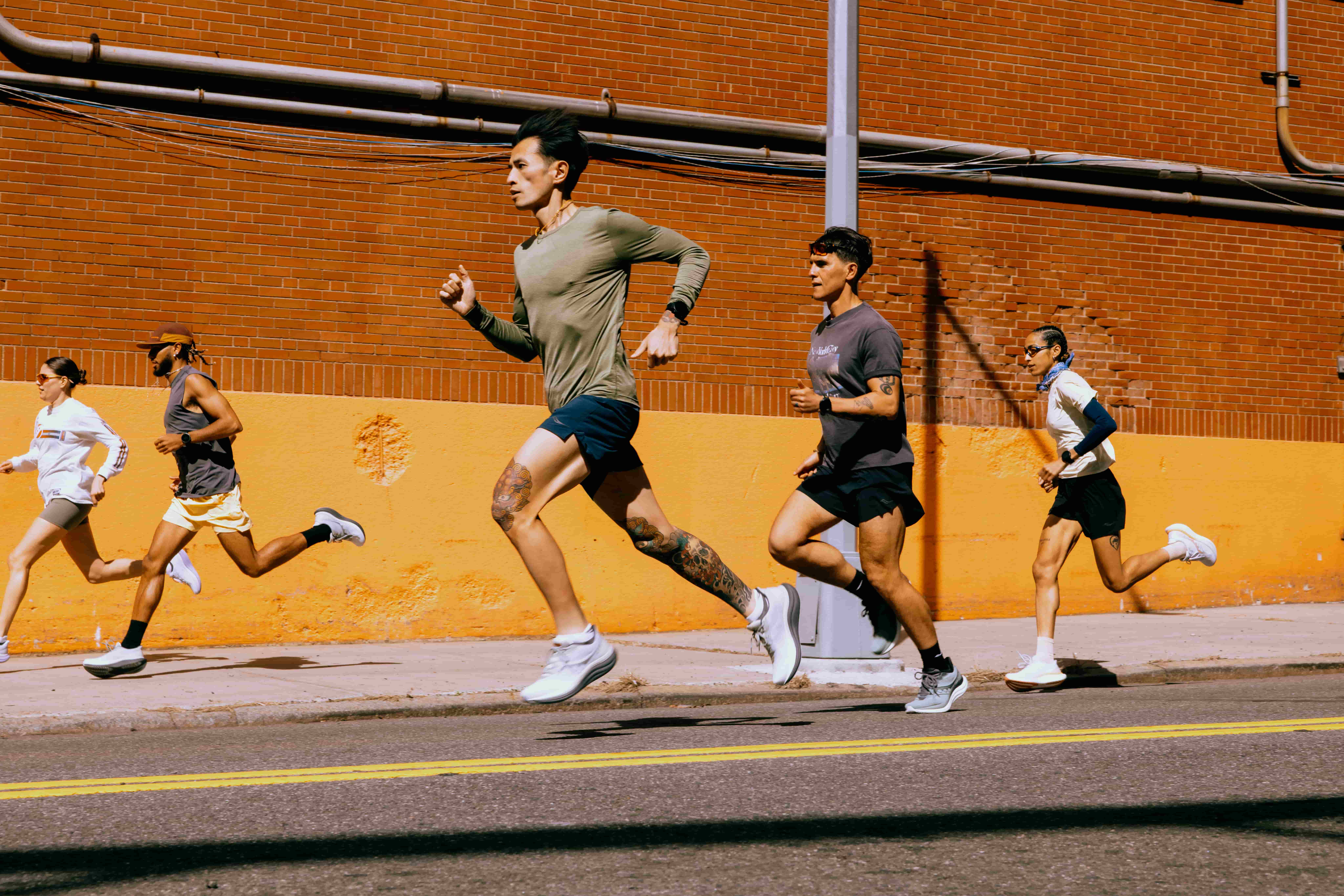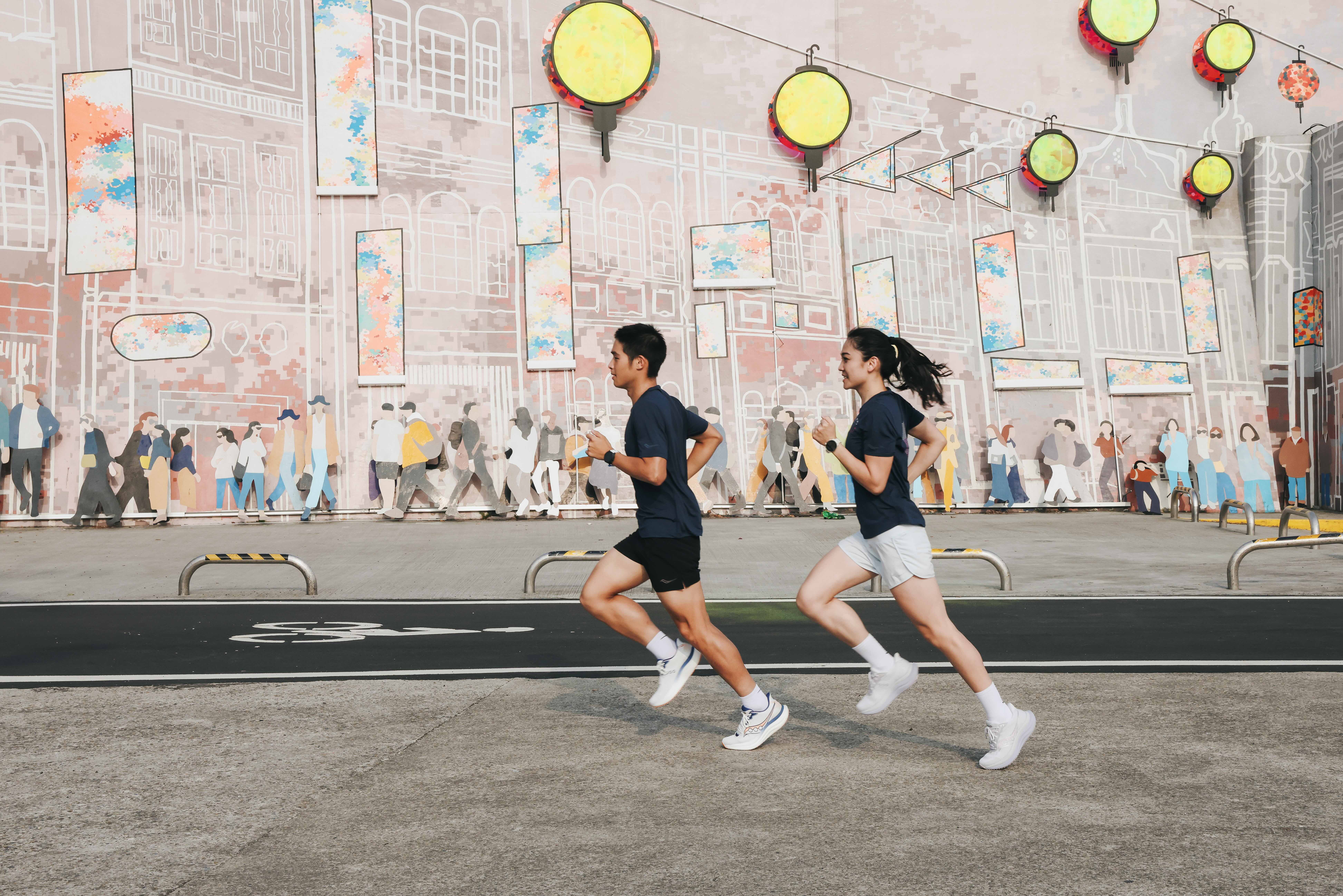 鐵人三項選手江典祐、許雅喬著 TRIUMPH 23 大稻埕試跑。圖|SAUCONY 提供