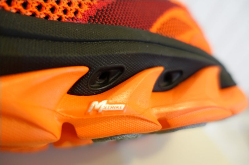 大底側面 M-STRIKE 標示,就是 SKECHERS 獨家的 Midfoot Strike 足弓推進科技