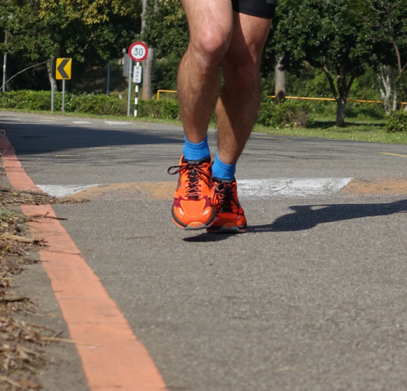 繞跑校園 20 公里,在起程的上坡路段,GOrun Ultra R 的大底抓地力,在坡道爬升的施力過程中,給予腿部穩定的回饋力道;在返程的下坡路段,透過雙重密度的 Resalyte 避震中底,柔軟踩踏,回彈反應,可以放心把力量釋出,落地衝擊的顧慮,就交給跑鞋的 Resalyte 吸震緩衝中底,腳掌落地到離地的轉換動作更為圓潤流暢。