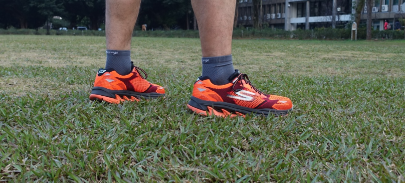 第一次穿上 GOrun Ultra R 跑鞋,包覆感非常服貼,足弓支撐明顯,腳跟到腳踝、鞋舌整體觸感極為柔順,大底柔中帶著韌性,穿著舒適感上留下美好的第一印象,雖然重量與競速型路跑鞋相較略顯沉重,但是此雙跑鞋既然強調高效避震性,重量的略增,自然無從避免。