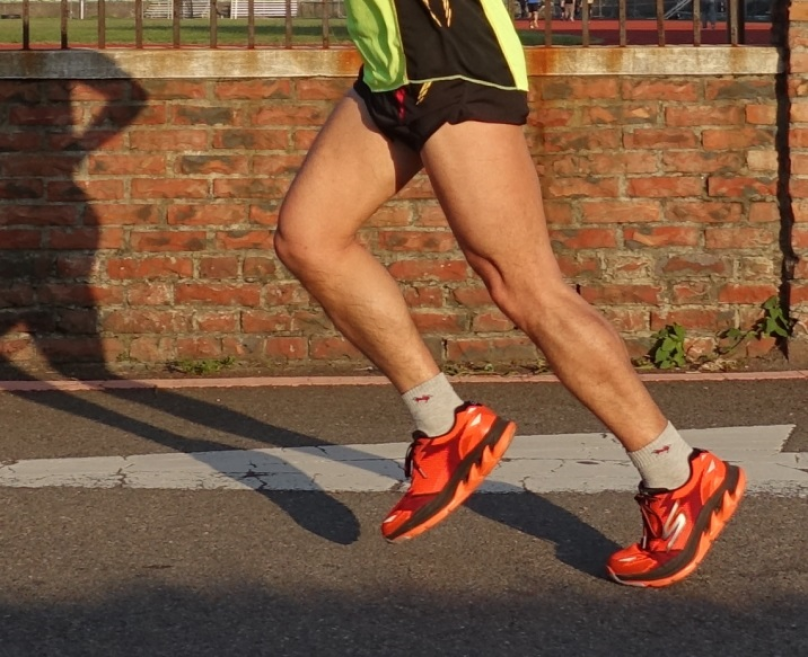 柏油路面是大多數路跑的賽道,陽光下的柏油路面,溫度較高,長距離跑步過程中,容易造成腳部悶熱潮濕不適,GOrun Ultra R 的針織鞋面、排汗沖孔大底,保持腳步空氣流通,跑了 10 多公里之後,雖然已經滿身大汗,但是足部仍然保有乾爽透氣的舒適感。