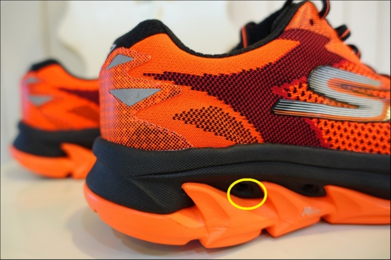 中底穿孔(黃圈處)到大底的獨特設計,使得 GOrun Ultra Road 具有絕佳的呼吸與排汗效果,發揮透氣舒適特性
