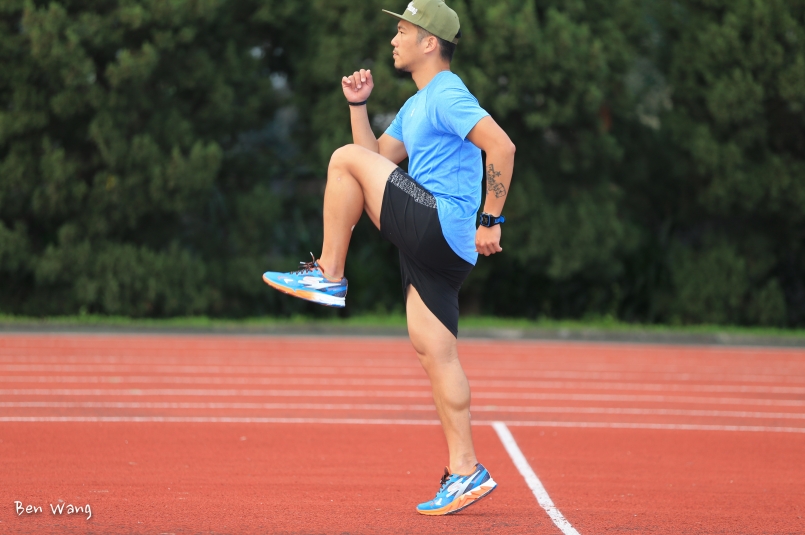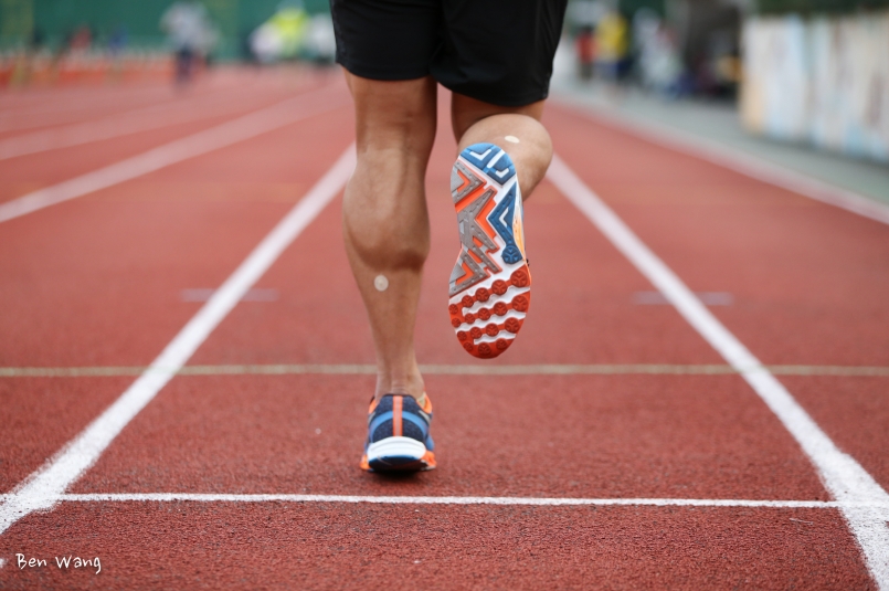 在彎道起跑的測試,腳尖抓地與後蹬不會感到鞋身壓迫腳背