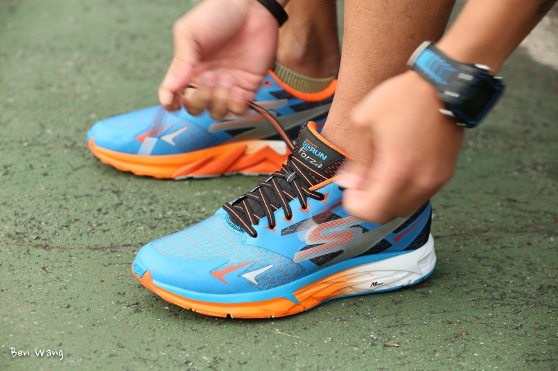 糯米是粗魯狂,穿太輕太飄的鞋款練習,總是提心吊膽怕穿壞它,所以扎實的鞋面與耐磨大底絕對是糯米首選,在這波新鞋上市潮中,介紹一款頗帥氣的跑鞋給跑友們認識一下,SKECHERS GOrun Forza!或許大家對 SKECHERS 不是那樣熟悉,但值得一提的是在中底設計上,獨家的 Resalyte® 發泡材質提供整個腳掌平順的步伐轉換,不管在慢跑或是加速跑,包覆性與穩定度表現意外的好,而且也很適合柏油路訓練,後跟 30 mm與前腳掌 22 mm 的前傾斜度助於推進,看似厚實卻只有 306 公克(此為男版重量,女版為 232 公克),良好的內旋控制跑起來完全不感到沉重。這次為了拍出好效果,攝影師不斷要求糯米做出衝刺與扭力測試,幾乎一整個過程中將鞋子發揮到極限啦!